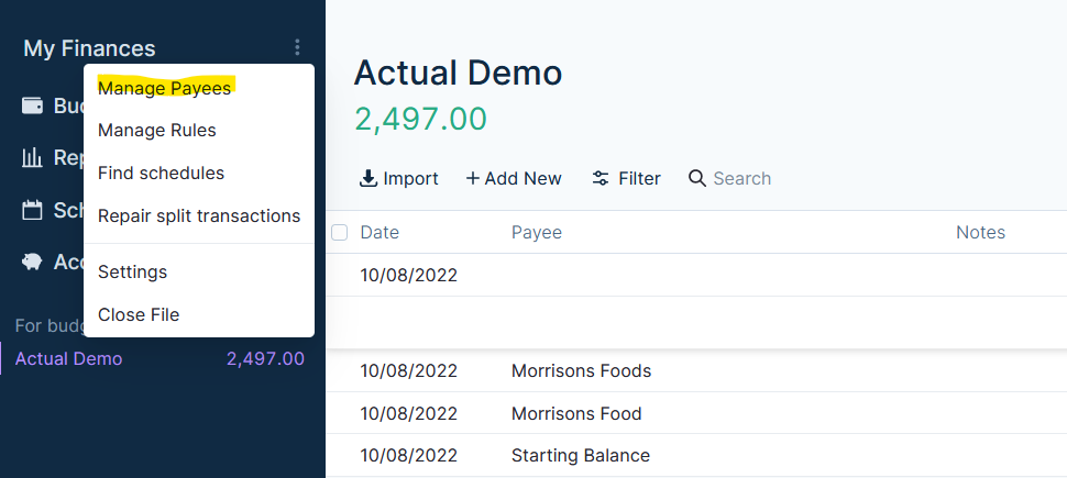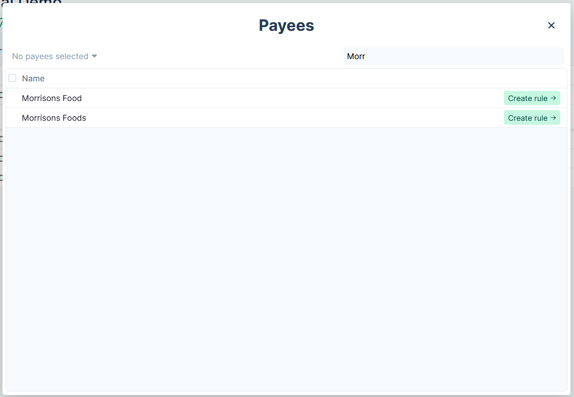 1. Type "Morrisons" into the filter to only show those payees.