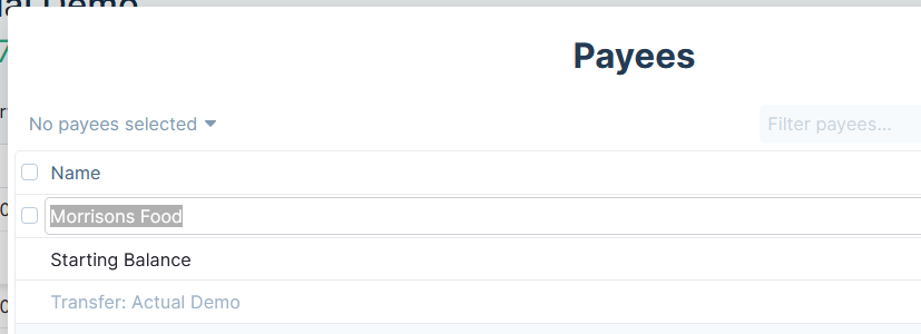 A payee is a description of the source of a transaction. Actual provides a powerful way of managing payees.