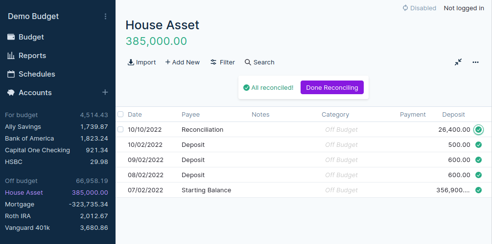 Using the Reconciliation tool for Off-Budget Asset tracking