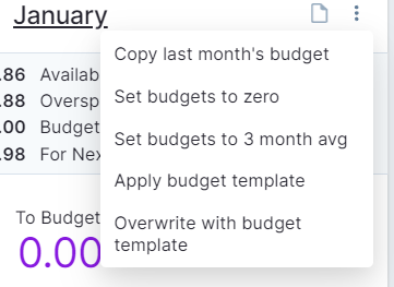 To apply the goal templates you create, enable the feature in the Settings experimental section. When the feature is on, two new options will appear in the monthly budget actions list.