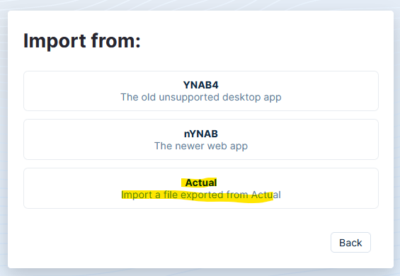 If you previously followed the steps to back up your data and have an Actual zip export, you can now import that using the web version of Actual.