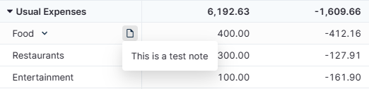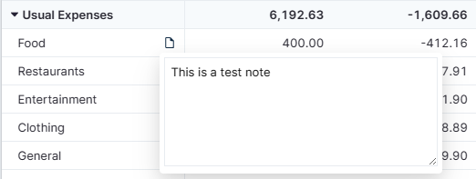 It is possible to add notes to Categories, to do this hover over the category that you would like to add a note to, a paper icon will appear.