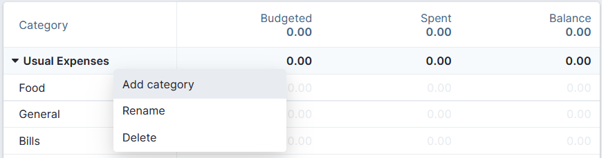 If you don't have much experience tracking your finances yet, we recommend starting simple. For this reason, Actual only comes with a few basic categories by default. Don't worry about tracking things super closely. Tracking a few basic areas of your life will still give you profound insights on your spending.