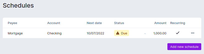 Schedules can be used to enter anticipated transactions early. Some of the available options to tailor schedules to your needs are: