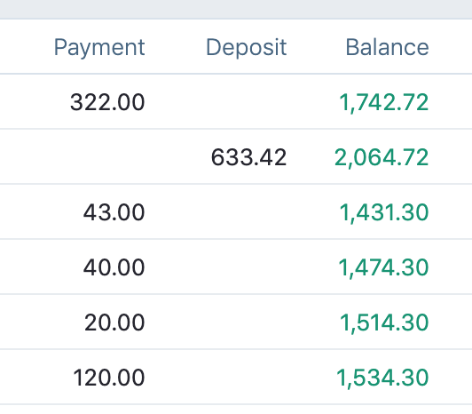 A "running balance" is the balance of the account after every transaction over time. This is very useful for reconciling accounts with banks because you can see the balance at a specific date and use it to compare it with your bank.